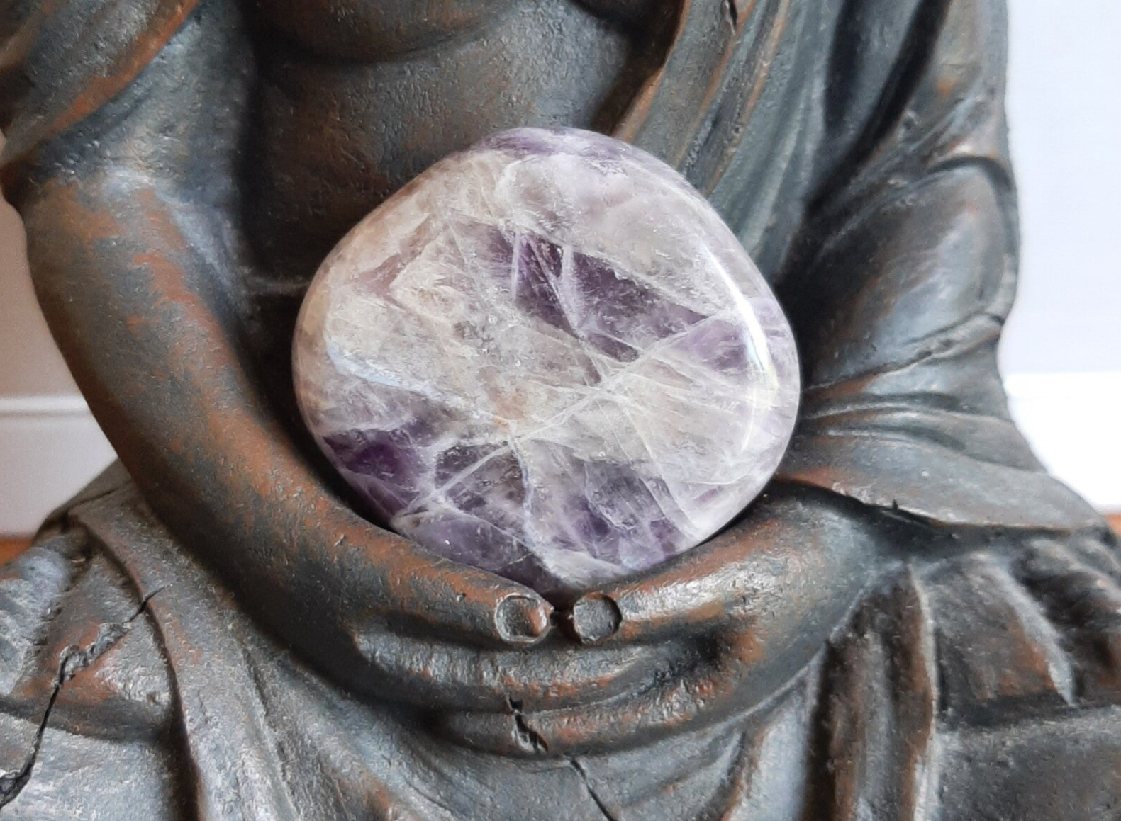 Amethist helpt bij meditatie om de geest tot rust te brengen en een diepe innerlijke rust te vinden waardoor je de wijsheid in jezelf kan ontdekken.