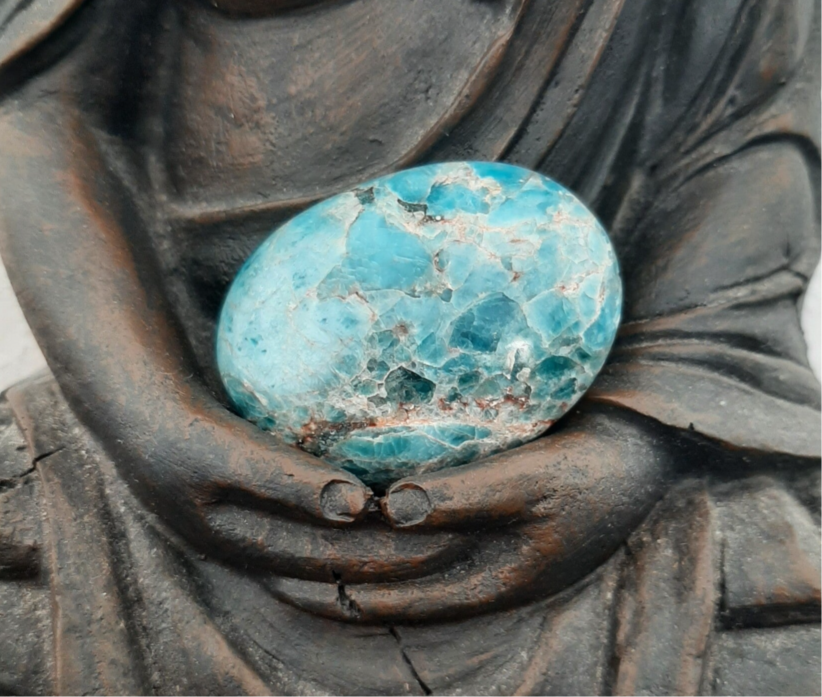 Zaksteen van blauwe apatiet van ca. 4 - 5 cm.