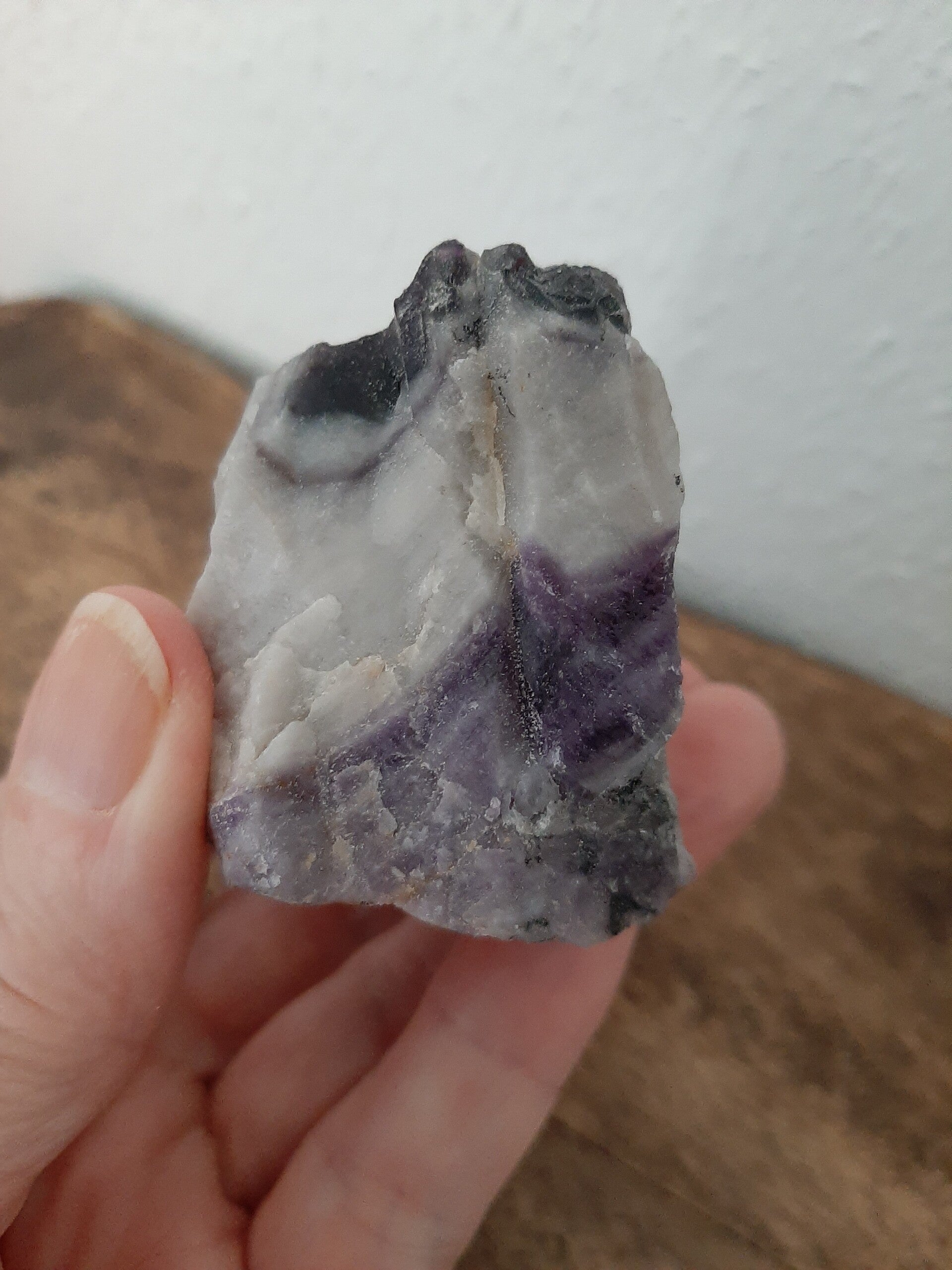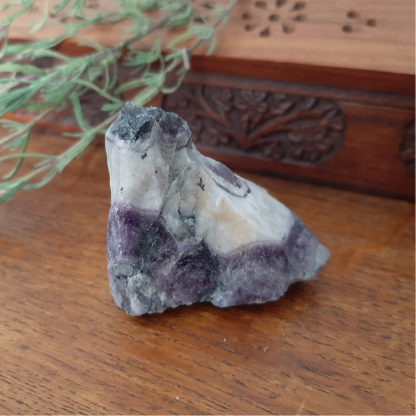Chevron Amethist combineert de reinigende en versterkende eigenschappen van witte kwarts met de beschermende en zuiverende invloeden van amethist. Deze bijzondere combinatie maakt het een krachtige steen voor spirituele groei en zuivering. Het helpt bij het openen van het derde oog en kruinchakra, waardoor spiritueel inzicht en hoger bewustzijn worden bevorderd. Chevron Amethist is ideaal voor meditatie en spirituele oefeningen, omdat het de innerlijke zelf en het hogere zelf verbindt, wat dieper begrip en helderheid bevordert.