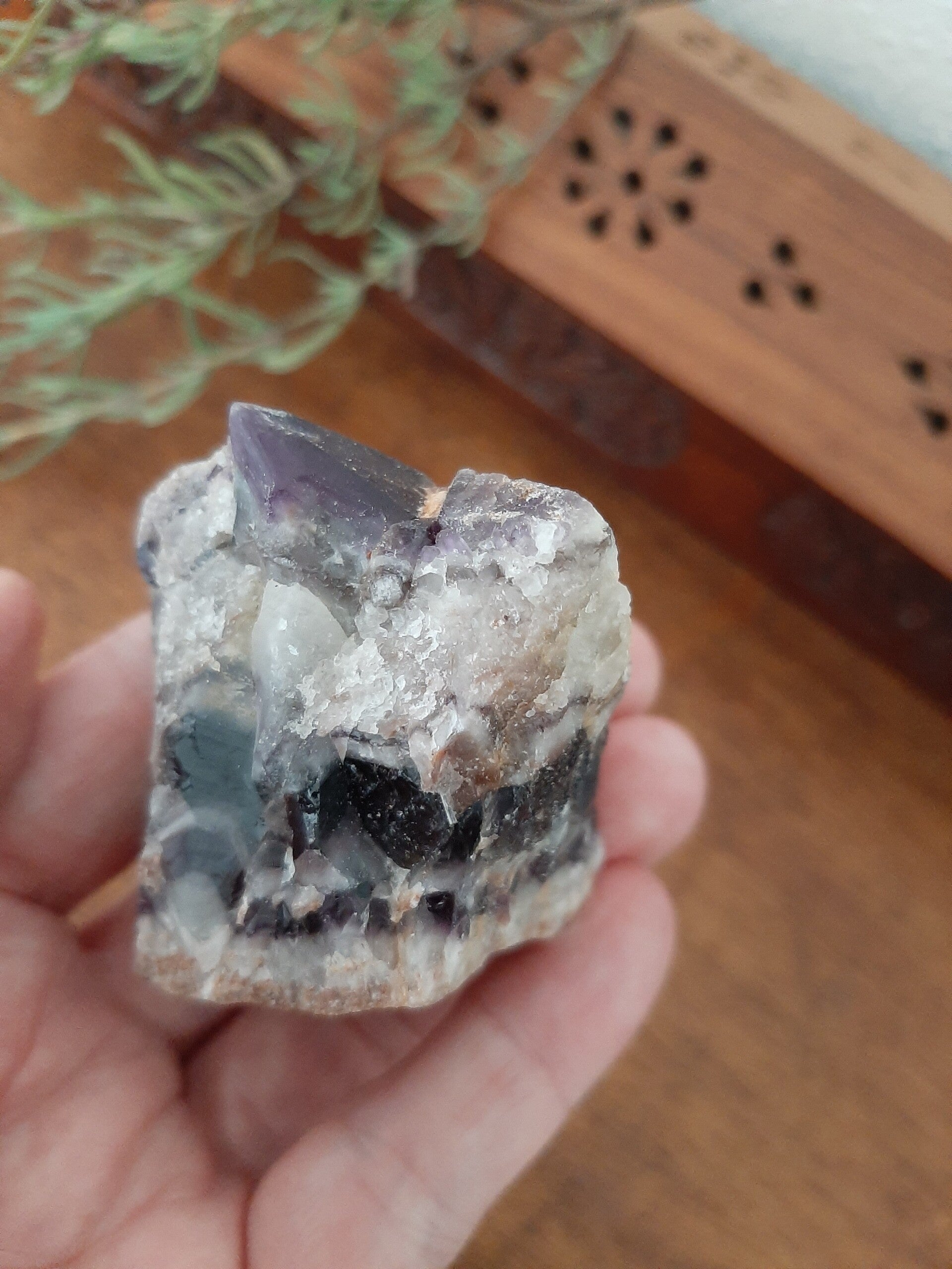 Chevron Amethist combineert de reinigende en versterkende eigenschappen van witte kwarts met de beschermende en zuiverende invloeden van amethist. Deze bijzondere combinatie maakt het een krachtige steen voor spirituele groei en zuivering. Het helpt bij het openen van het derde oog en kruinchakra, waardoor spiritueel inzicht en hoger bewustzijn worden bevorderd. Chevron Amethist is ideaal voor meditatie en spirituele oefeningen, omdat het de innerlijke zelf en het hogere zelf verbindt, wat dieper begrip en helderheid bevordert.