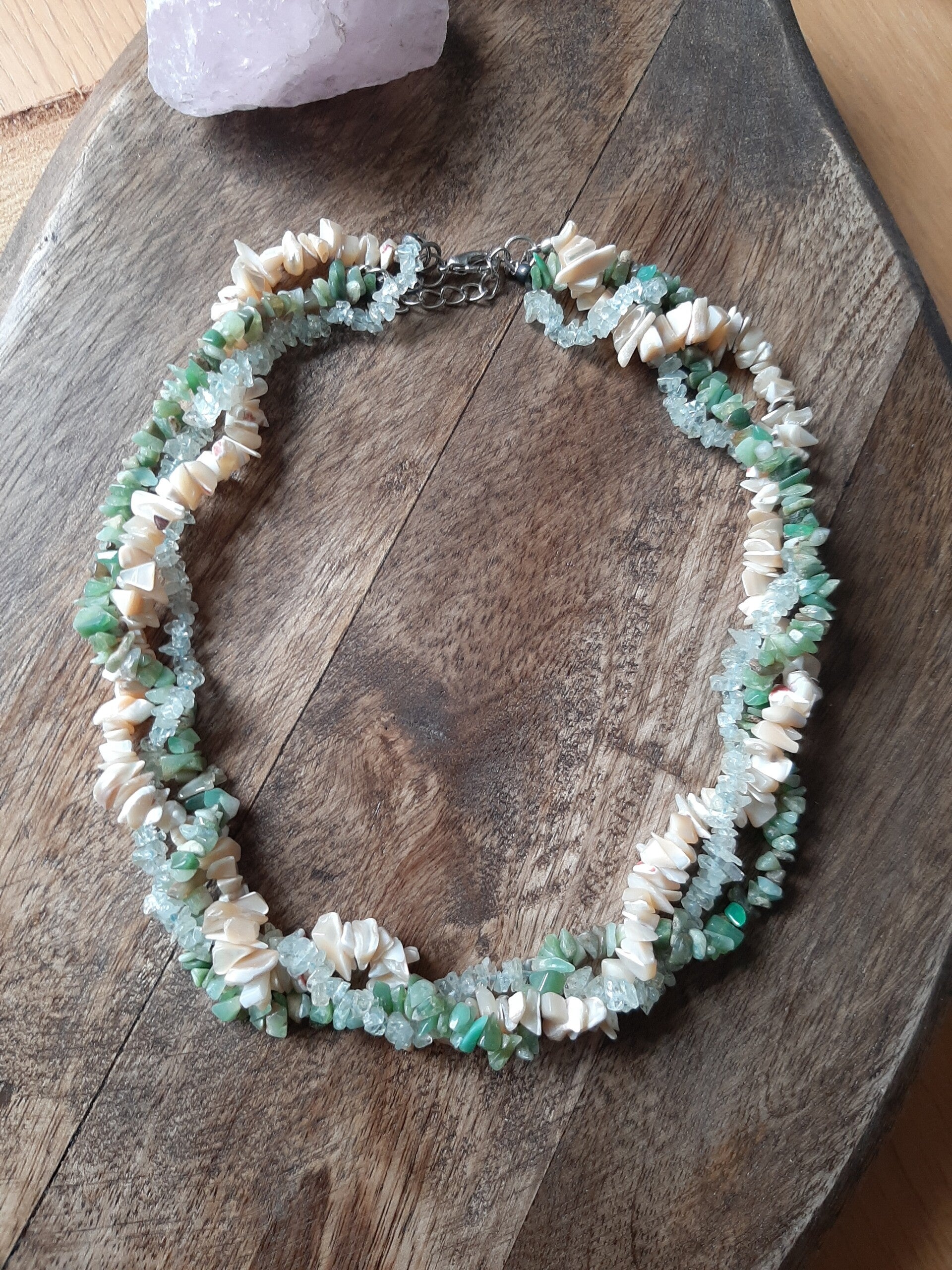 Clearity combi splitketting (Aquamarijn, Chrysopraas en Parelmoer)