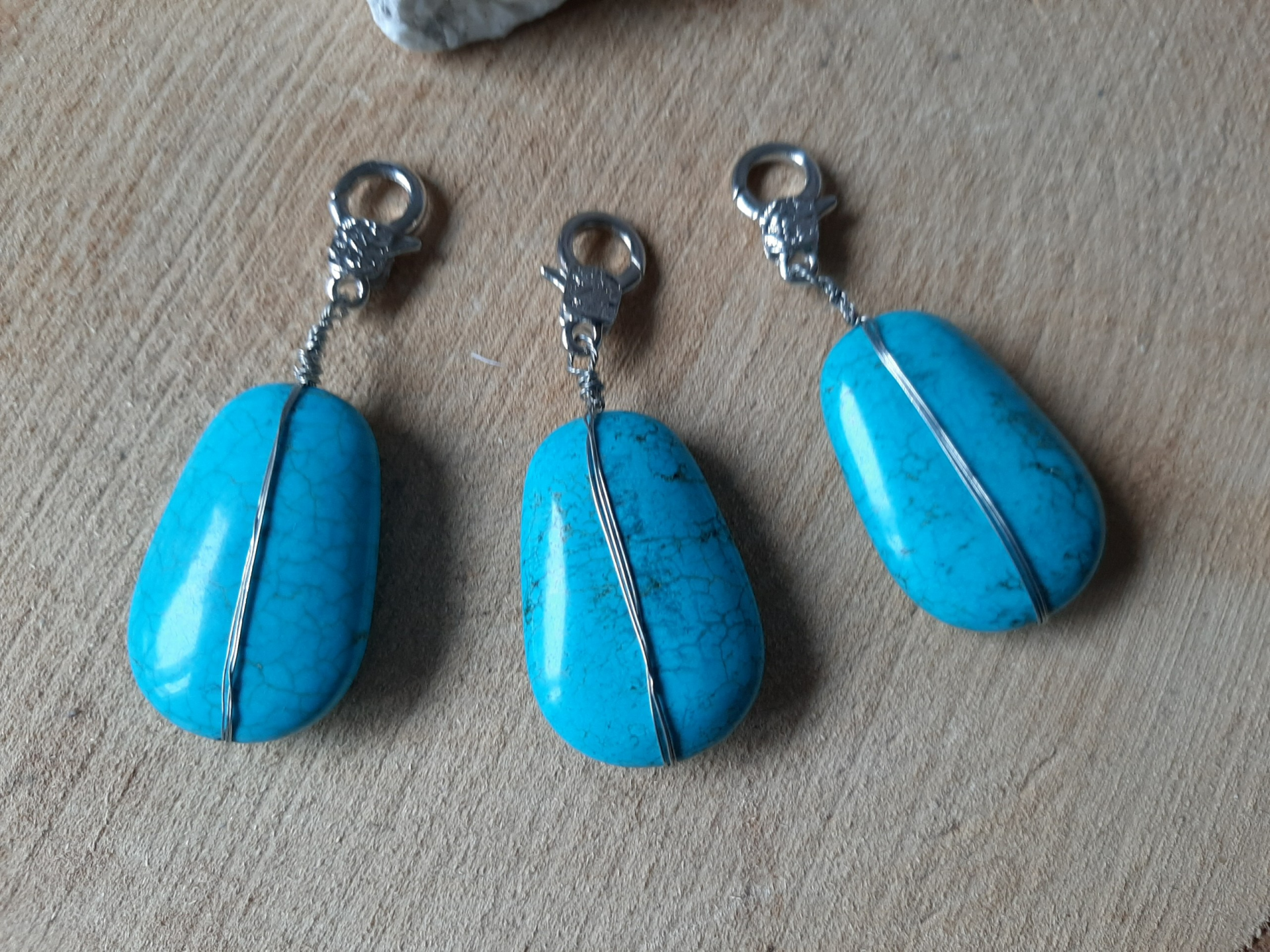 Fantasie tashanger met een mooie grote ovale kraal van blauwe howliet. De tashanger is in zijn totaal ca. 8 cm lang. De kraal is ca. 4.5 cm lang.