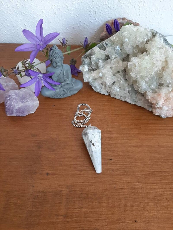 Regenboog Maansteen wordt soms ook wel witte Labradoriet genoemd. Net als Labradoriet werkt Maansteen Regenboog op je invoelingsvermogen en intuïtie. Je kunt door Maansteen Regenboog indrukken makkelijker verwerken en je voelt je minder snel overprikkelt. Ook zul je alerter kunnen zijn en kun je dromen makkelijker onthouden. Maansteen Regenboog brengt ook bewustwording met betrekking tot je gezondheid, en kan helpen tegen overgewicht. Daarnaast heeft Maansteen Regenboog net als de andere Maanstenen een connectie met de maan, en zorgt het voor hormoonbalans. Eveneens wordt vrouwelijke energie versterkt door Maansteen Regenboog.